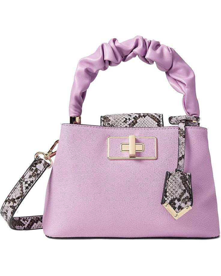 One internal un-zip pocket.Removable strap.Wrapped and ruched top handle.Snake-inspired dangle and flap.Recycled polyurethane lining.Imported.Measurements: