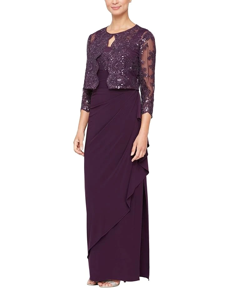 Be the first to review “Alex Evenings Long Empire Waist Embroidered Jacket Dress With Jacket And Cascade Detail Skirt” Cancel reply