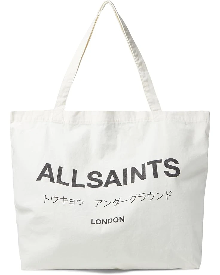 Designed in a simple style with a spacious interior, the AllSaints™ Underground Tote easily holds your go-to essentials.SKU: #9882729Made of cotton.Open top design.Dual top handles.Contrasting brand name printed on the front.Machine washable.Imported.Measurements: