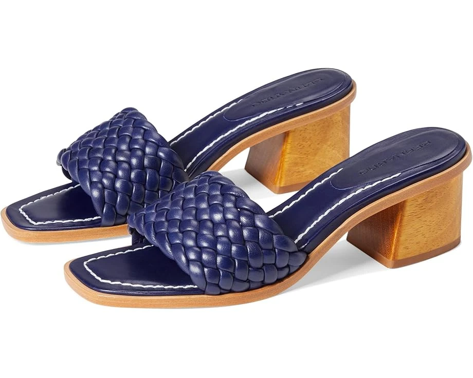 Exude a feminine vibe by completing your look wearing the Bernardo® Bethesda Heels. SKU: #9857200Leather upper, lining, and insole. Slip-on style. Eye-catching woven detailing on the strap. Open toes and wooden block heels. Rubber outsole with high traction. Made in Brazil. Product measurements were taken using size 9, width M. Please note that measurements may vary by size.Weight of footwear is based on a single item, not a pair.Measurements: