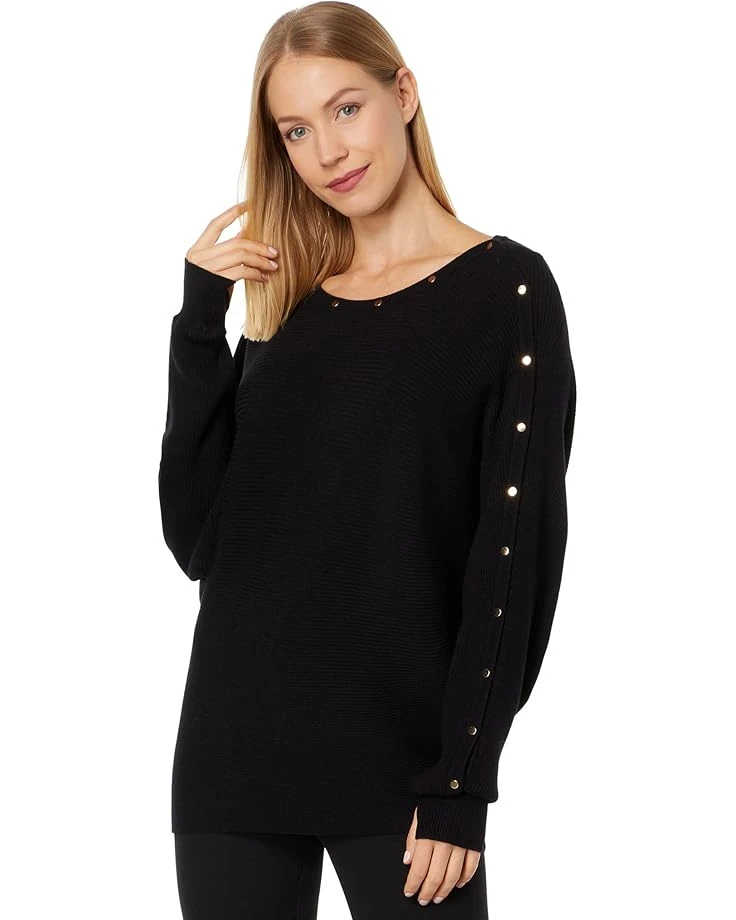 Snuggle into the colder months in a chic and elegant style by opting for the Blanc Noir® Portola Sweater which is crafted in a soft, breathable, and comfortable fabric.SKU: #9812895Relaxed fit.Crew neckline and long sleeves.Functional buttoned plackets on the sleeves.Banded cuffs with thumbholes.42% rayon, 25% polybutylene terephthalate, 15% TENCEL™, 15% acrylic, 3% cashmere.Hand wash, dry flat.Imported.Product measurements were taken using size SM. Please note that measurements may vary by size.Measurements: