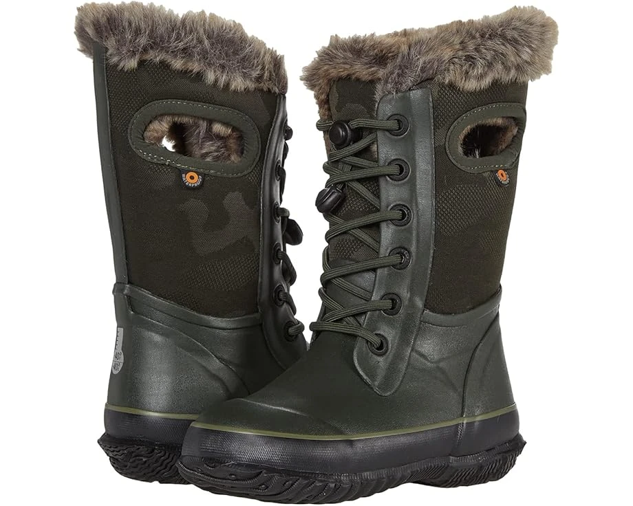 Note: The sizing info on the box will differ slightly from our sizing (Ex: Bogs 7I = 7 Toddler, Bogs 1K = 1 Little Kid). Please select your child’s regular size when ordering.SKU: #9518287Make it through each morning commute and keep your feet cozy in the ultrawarm Bogs® Kids Arcata Tonal Camo boots. These dependable waterproof boots are designed with a seam-sealed bootie with a fabric upper and a faux-fur collar that traps in heat.