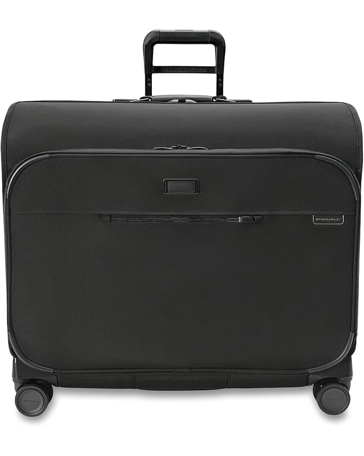 Keep your essentials stored in the functional and spacious Briggs & Riley® Baseline Deluxe Wardrobe Spinner Bag.SKU: #9873331Ballistic nylon construction.Outsider® handle provides optimal capacity and a flat packing surface inside to minimize wrinkling.Aircraft-grade aluminum telescoping handle with multiple stop heights is engineered with a superior impact resistant V-groove design for worry-free travel.Brand logo on front.Proprietary shock absorbing spinner wheels offer 360 degree maneuverability and smooth quiet gliding for effortless navigation.Substantial corner-guard protection using impact-resistant material helps protect your luggage, ensuring durability for countless miles.SmartLink™ strap allows for easy transport of two bags as one. Ergonomic Outsider® handle grip and cushioned top carry handle for comfort and smooth handling on your travel journeys.Hide-away leather ID tag is an elegant, discreet feature that keeps your personal information concealed during travel.Zipper closure.SpeedThru™ pocket provides convenient access to your stored items at security checkpoints.Large front pocket for hassle-free access to extra items.Garment bag hook to hang on a door included for easy access to contents.Bottom fabric handle provides an additional grab point when needed.TSA cable combination lock included.Spacious center tie down secures your attire by adding compression, reduces shifting while in transit.Three sets of hanger brackets to securely hang 6-8 garments, keeping it wrinkle-free and just as you packed them.Removable zip-in extended panel keeps longer garments neat.Door panel features multiple pockets to optimize use of space, adding convenience and organization to your travel.Two corner pouches strategically placed to optimize use of space, can be easily detached for storing accessory items.Interior lining in contrasting color makes finding contents easy.Imported.This product may have a manufacturer’s warranty. Please visit the manufacturer’s website or contact us at [email protected] for full manufacturer warranty details.