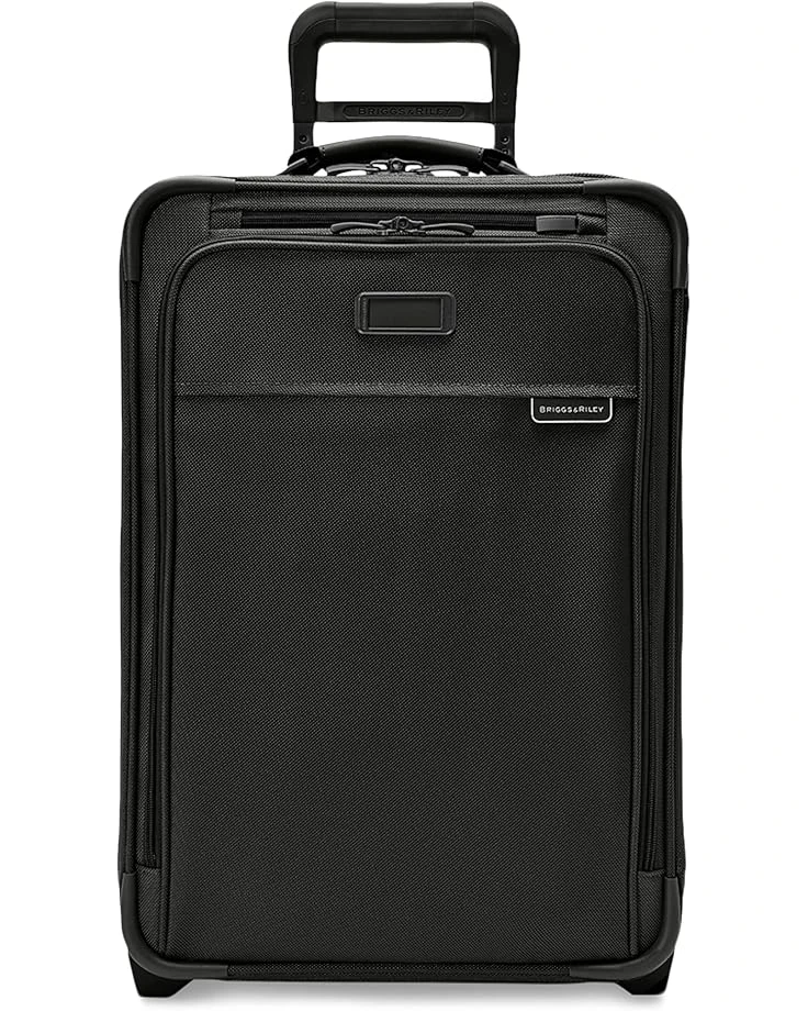 An expandable bag with a tri-fold garment folder, the Briggs & Riley® Baseline Essential 2-Wheel Carry-On Luggage Bag has ample space to store all your travel essentials.SKU: #9873283Premium ballistic nylon construction.Two mesh lid zip pockets.Foam roll bar neatly holds 1-2 suits and prevents wrinkling.One-touch CX® expansion increases packing capacity when you need more space.Patented and iconic outsider handle offers optimal capacity.Substantial corner-guard protection.SmartLink™ strap allows for easy transport of two bags as one..Ergonomic Outsider® handle grip and cushioned top carry handle for comfort and smooth handling.Hide-away ID tag and SpeedThru pocket with orange lining visually informs you that the pocket is opened.Large front pocket for hassle-free access.Imported.This product may have a manufacturer’s warranty. Please visit the manufacturer’s website or contact us at [email protected] for full manufacturer warranty details.
