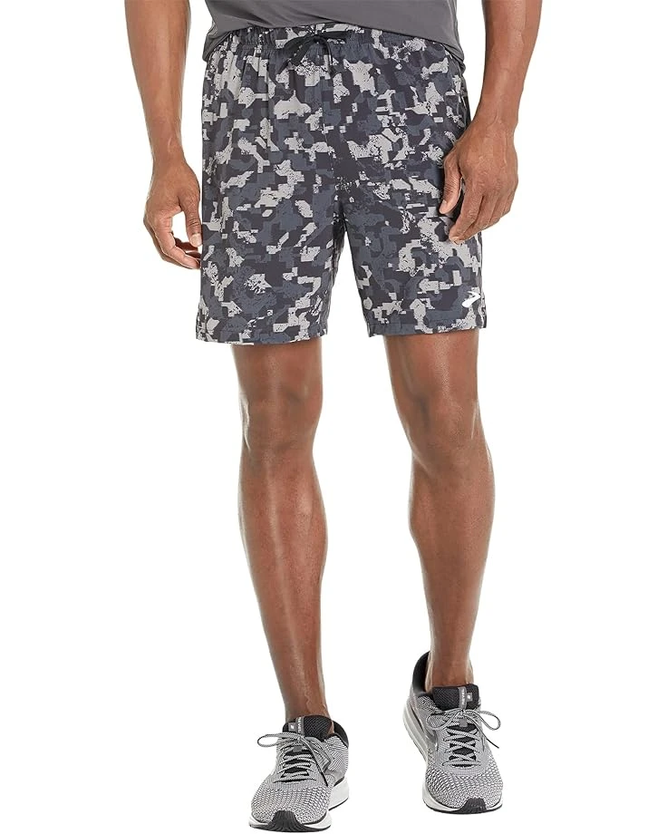 Chill all day long in these easy style camo print Brooks® Moment 7″ Shorts.SKU: #9837939Stretchy fabric and adjustable fit.Pull-on style.Elasticized waist with drawcord.Liner pocket stores a key or other small essentials.Brand logo detail on the left leg.Side slit hem.Allover camouflage print.86% polyester, 14% spandex. Machine wash, tumble dry.