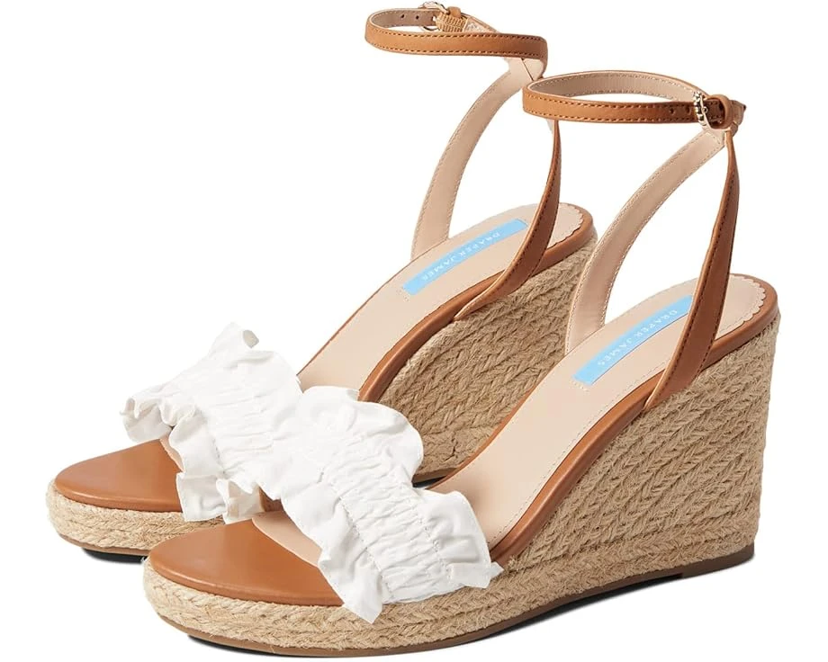 Lend a boho vibe to your serene warm weather look donning the Draper James® Abigail Heels.SKU: #9740383Textile and leather upper.Comfort synthetic lining and insole.Buckle strap closure on the ankle.Round open toe silhouette.Chunky jute-wrapped wedge.Synthetic outsole.Imported.Product measurements were taken using size 9, width M. Please note that measurements may vary by size.Weight of footwear is based on a single item, not a pair.Measurements: