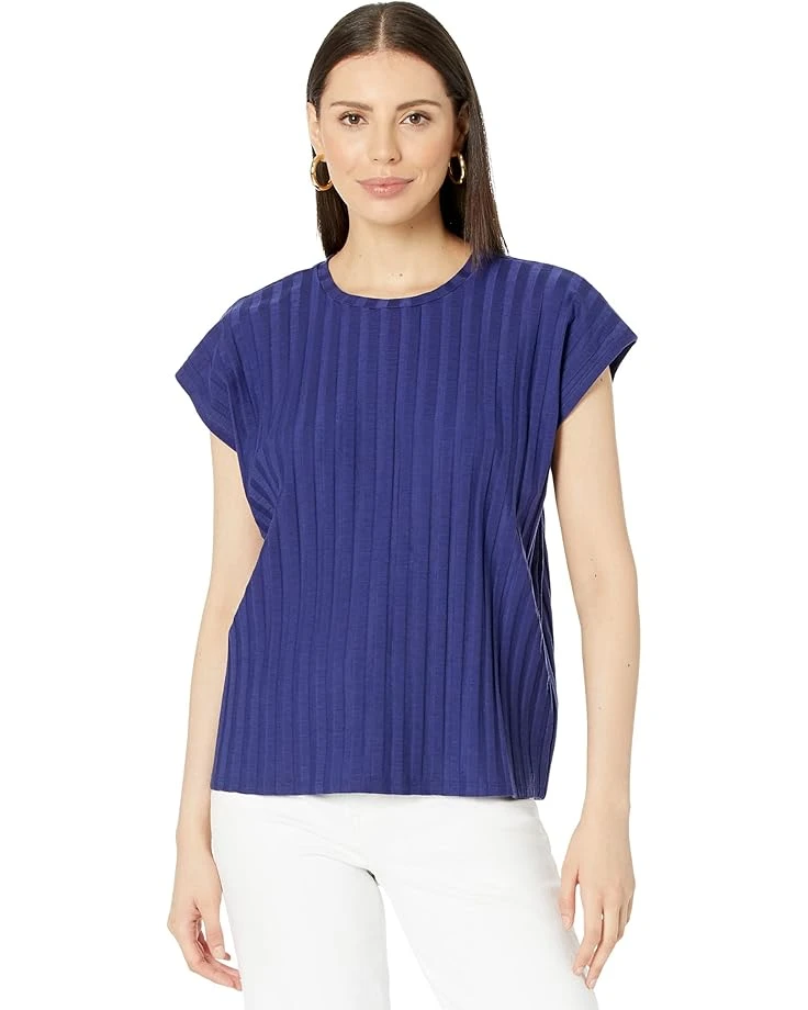 Stay basic yet stylish wearing the Eileen Fisher® Crew Neck Boxy Top.SKU: #9830945Boxy fit. Crew neckline with cap sleeves. Finished with banding at the neck.Straight hem. Ribbed texture.Pull-on style. 88% TENCEL™ Lyocell, 12% spandex.Machine washable. Made in the USA. Product measurements were taken using size SM. Please note that measurements may vary by size.Measurements: