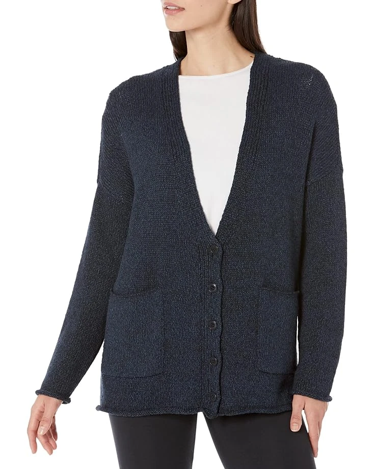 Add the perfect layer of cozy warmth during chilly days in the EILEEN FISHER® V-Neck Cardigan.SKU: #9832957V-neckline.Front button-closure.Long set-in sleeves.Front patch hand pockets.Dropped shoulders.Standard fit.Straight hemline.Responsible by Design: that means it meets Eileen Fisher’s highest standard for environmental or social impact. It reflects the efforts to take responsibility for what is made, always looking for more sustainable materials and methods.Organically farmed cotton supports clean water and healthy soil.68% organic linen, 32% organic cotton.Hand wash.Made in Peru.Product measurements were taken using size SM. Please note that measurements may vary by size.Measurements: