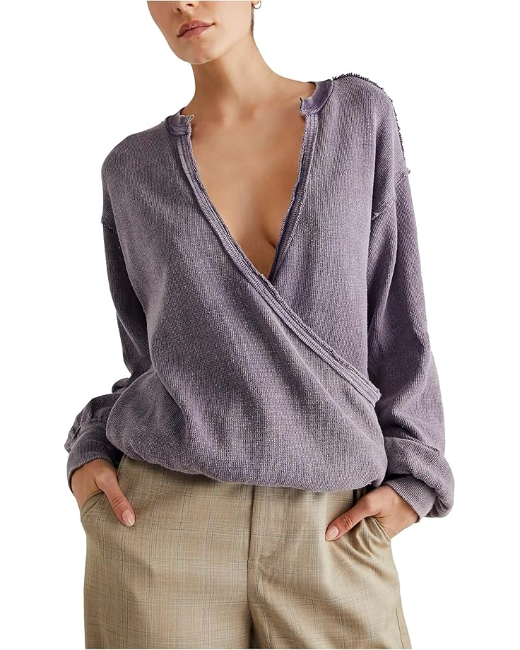 Look cool and stylish wearing this Free People™ Anyway Tee.SKU: #9842151Slouchy fit.Plunging V-neckline.Dropped shoulders.Long puffed sleeves with cuffs.Drapey, wrap-front silhouette.Subtle distressing at hems and seams for a truly lived-in look.60% cotton, 40% polyester.Machine washable.Imported.Measurements: