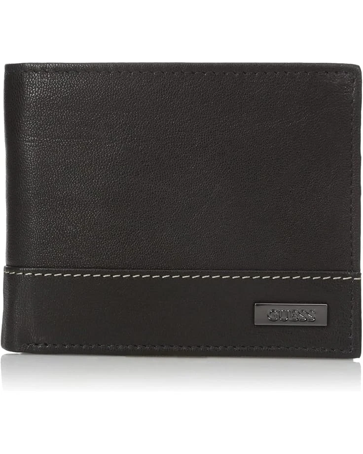 100% LeatherSKU: #9657301ChinaMachine WashEXTRA CAPACITY: This wallets features 7 card slots that will hold your business cards, credit cards, and ID with ease. It also includes a clear ID window with thumb holes and a bill compartment, so you can fit everything you need.MINIMALIST DESIGN: Our GUESS designers crafted this slim passcase wallet with care and precision. They added a contrast stitching detail and a small ornament logo on front, so you can subtly stand out while always staying stylish.GENUINE LEATHER: We only choose the best materials for our wallets, and this one is no exception. The soft and supple leather will protect your most important belongings and look great with every outfit.THE PERFECT GIFT: Coming in an effortlessly classy gift box, this Guess bifold is such an easy gift for any man. Because what guy couldn’t use a new wallet?