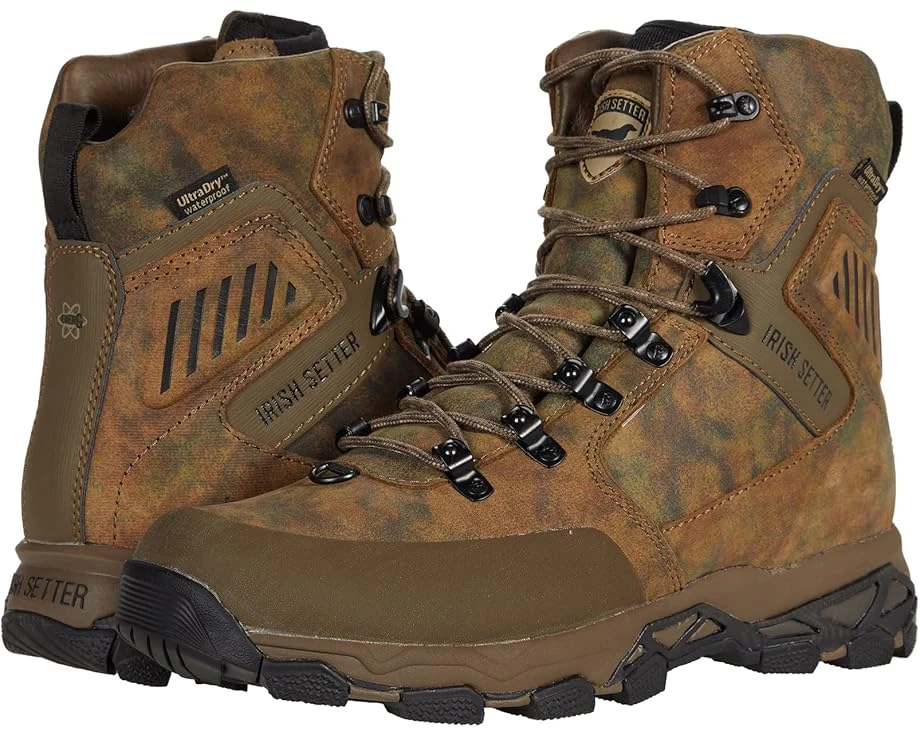 Bring on the heat as you trail the big boys with expert ease in the ruggedly built Irish Setter® Pinnacle 9″ 400 g Waterproof boot.SKU: #9553094Trout Brook full grain leather upper, handcrafted by the S.B. Foot Tanning Company in Red Wing, Minnesota and is made exclusively for the Irish Setter. It is the most durable of leathers and will meet the demands of the toughest trail or job site.UltraDry™ technology keeps your feet dry even in the wettest conditions.ArmaTec™ XT adds durability and life to your boots by using armored leathers in the toe and heel to prevent material breakdowns.Soft toe.Plush collar for added comfort. Heel pull loop for easier on/off.400 grams of Primaloft™ provides breathable, moisture-wicking warmth.ScentBan lining aids in keeping you concealed in the woods.Foam footbed and cushioned EVA midsole for comfort.Steel shank for added support.Goodyear® Leather Welt construction. Rubber outsole with ligged traction for grip and stability.Imported.Product measurements were taken using size 9, width D – Medium. Please note that measurements may vary by size.Measurements: