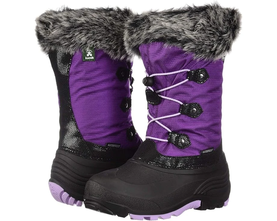 Be sure every step she takes feels like floating on a cloud in the Kamik® Kids Powdery 2 snow boots. The seam-sealed boot is constructed with a waterproof nylon upper. SKU: #9068092Mid-calf boot sports faux-fur trim with a bungee speed lacing and adjustable toggle closure.Breathable 8mm Zylex™ lining ensures keeps the foot dry and warm.Durable RubberHE™ outsole designed with SNOWAVE technology to ensure stability with every step.Rated -40°F.Made in USA with domestic and imported materials.Product measurements were taken using size 9 Toddler, width M. Please note that measurements may vary by size.Measurements: