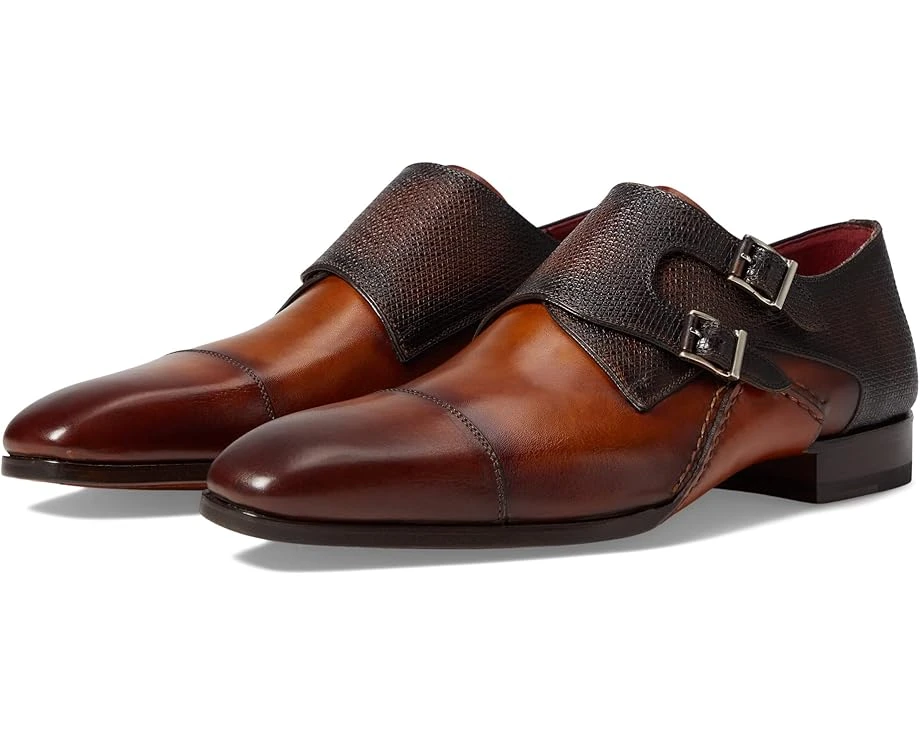 For all Magnanni footwear, the brand suggests sizing down a half size for the best fit. SKU: #8975739Treat yourself to exquisite style with the eye-catching Magnanni® Ondara.Hand stained full-grain leather upper.Features an adjustable double buckle.Burnished square cap toe.Soft leather sock lining.Non-removable insole.Leather welt.Stacked heel.Leather sole.Made in Spain.Product measurements were taken using size 11, width M. Please note that measurements may vary by size.Measurements: