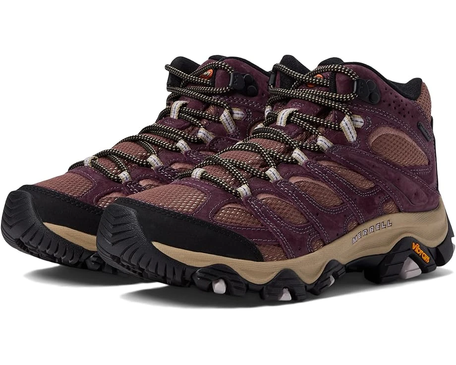 The Merrell® Moab 3 Mid Waterproof Hiking Shoes have a lightweight, stylish design with a sticky grip outsole that will keep you steady and secure on every movement.SKU: #9597326Suede leather and mesh textile upper.Breathable textile lining.Removable Kinetic Fit™ ADVANCED contoured insole with reinforced heel for flexible support and underfoot comfort.Waterproof membrane restricts water and allows moisture to escape, keeping your feet dry.Merrell® Air Cushion in the heel absorbs shock and adds stability to your feet.Super Rebound Compound provides durable shock absorption in the heel to help reduce torque, thereby enabling a smooth transition into the midfoot.Molded nylon arch shank for added stability.Lace-up construction for a secure and flexible fit.Protective toe cap.Bellows tongue helps to prevent debris.Vibram® TC5+ outsole for the best combination of traction and durability on wet or dry surfaces.Imported.Made with 100% recycled laces, webbing, and mesh lining.Product measurements were taken using size 8.5, width M. Please note that measurements may vary by size.Measurements: