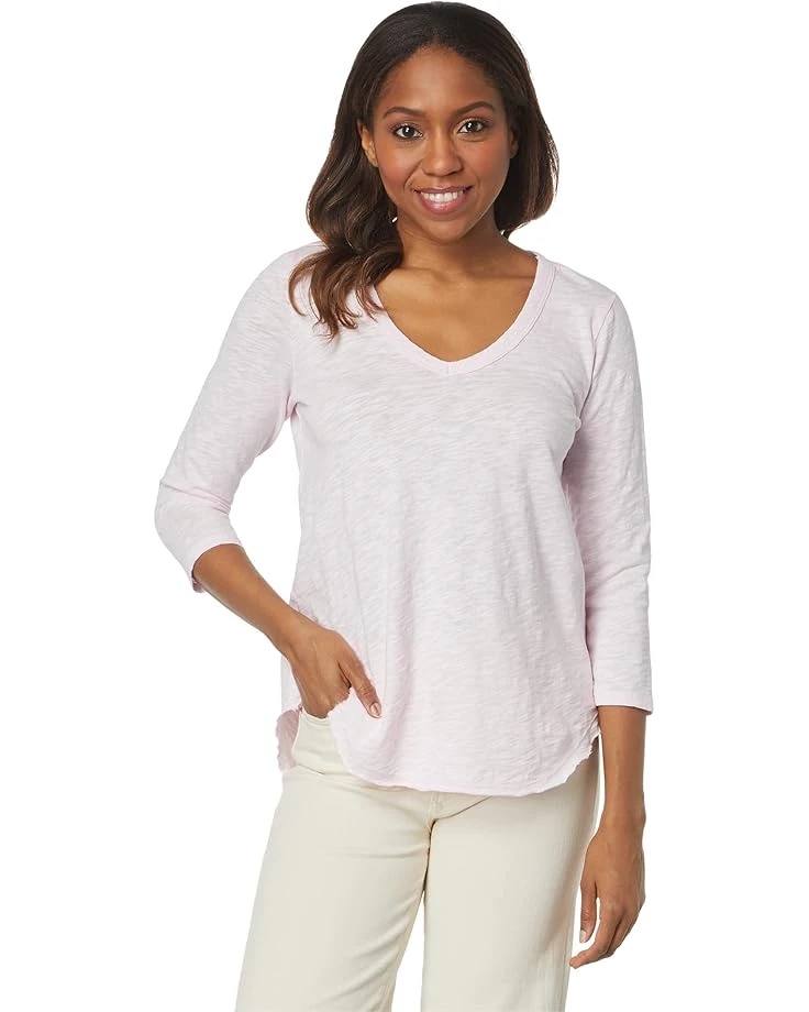 You’re bound to look awesome by donning the Mod-o-doc™ Slub Jersey 3/4 Sleeve V-Neck Tee with Curved Hem.SKU: #9859604Pull-on style. V-neckline and three-quarter sleeves. Curved, raw hem. 100% cotton.Machine wash, tumble dry. Imported. Product measurements were taken using size SM (US 4-6). Please note that measurements may vary by size.Measurements: