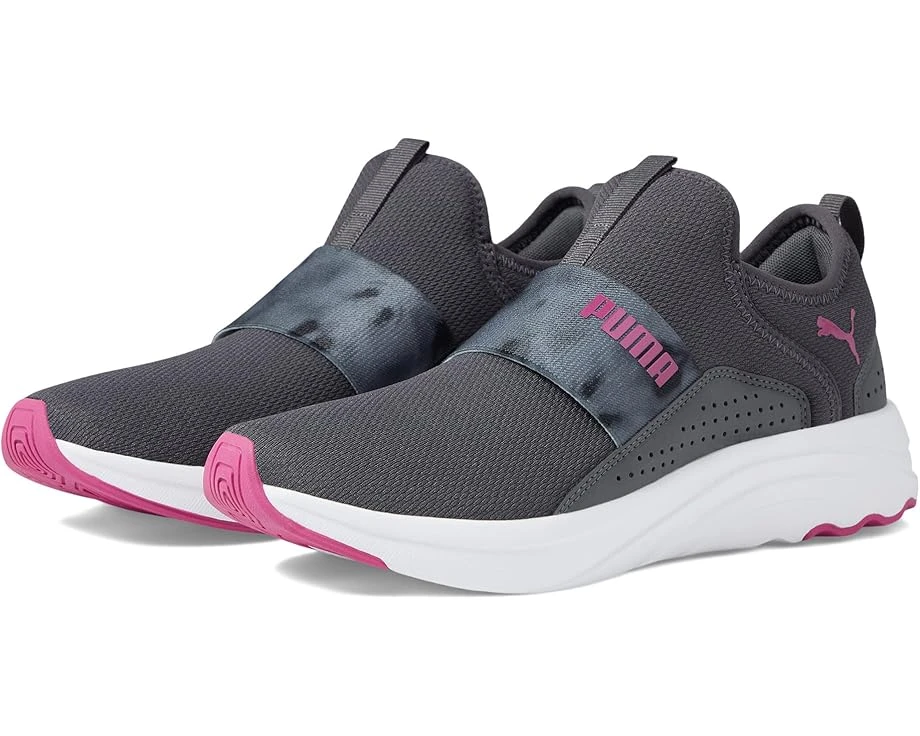 Take every step in a sporty and casual style wearing PUMA® Softride Sophia Slip-On Dark Sky Athletic Shoes.SKU: #9743195Textile and synthetic upper.Textile lining and insole.Slip-on construction.Softride technology for cushioning and comfort.SoftFoam+ sockliner for optimal step-in comfort.Pull tab on the front and back.Almond toe.Brand logo on side panel, heel counter, and heel pull tab.Zoned rubber on outsole for ultimate traction.Imported.Product measurements were taken using size 8.5, width B – Medium. Please note that measurements may vary by size.Measurements: