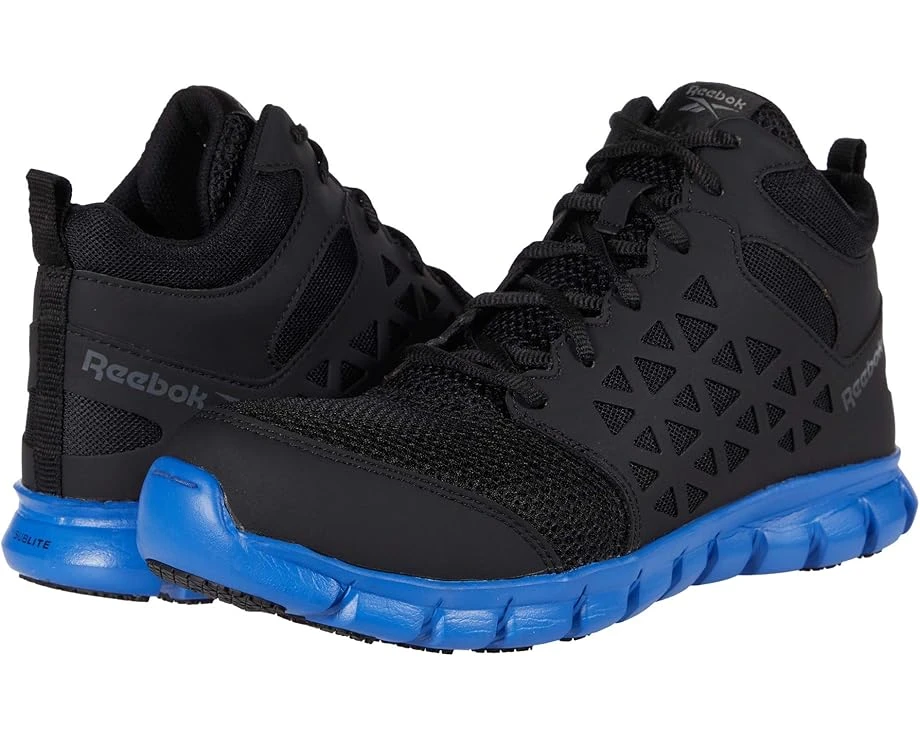 Reebok® Work Day One Safety Sublite Mid feature a microfiber and nylon upper, a moisture wicking nylon lining removable MemoryTech massaging insole and sublite EVA cushion midsole with rubber heel and forefoot pads.SKU: #9466709XTR® brand composite toe cap meets ASTM F2413 I/C (Impact and Compression), Static Dissipative (SD 10) with dual resistor safety standards.Slip resistant outsole meets and exceeds MARK II Standard of .53 oily/wet.Imported. Product measurements were taken using size Men’s 9, Women’s 11, width Medium. Please note that measurements may vary by size.Measurements:
