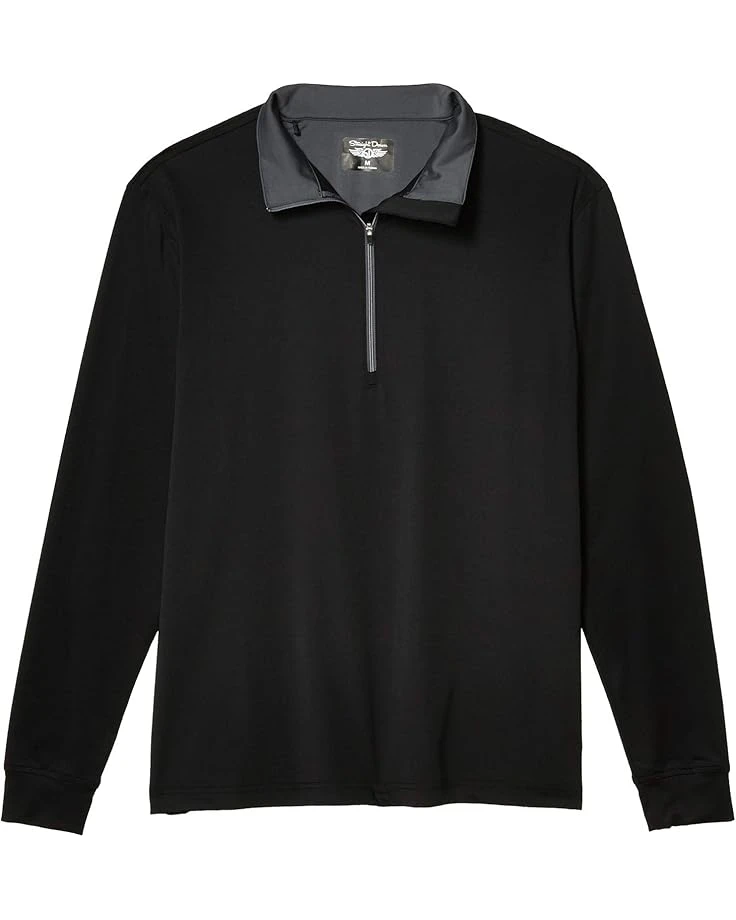 Stay covered from the first drive to the final putt in the athletic Straight Down Golf Ringer 1/4 Zip Pullover.SKU: #9383500Lightweight, heathered stretch delivers all-day performance-ready comfort and unrestricted mobility.Moisture-wicking fabric draws perspiration away from the body and towards the surface where it can evaporate.Odor-control finish repels odor and extends freshness.Stand collar.Quarter-length zip closure.Long sleeves.Logo detail at the nape.Straight hem.92% polyester, 8% spandex.Machine wash, tumble dry.Imported.Product measurements were taken using size MD. Please note that measurements may vary by size.Measurements: