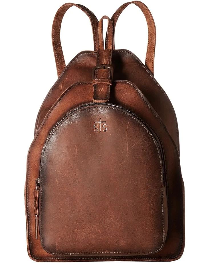 The STS Ranchwear™ Baroness Backpack has a versatile style that will easily match your on-the-go life. SKU: #9063255Distressed brown leather backpack.