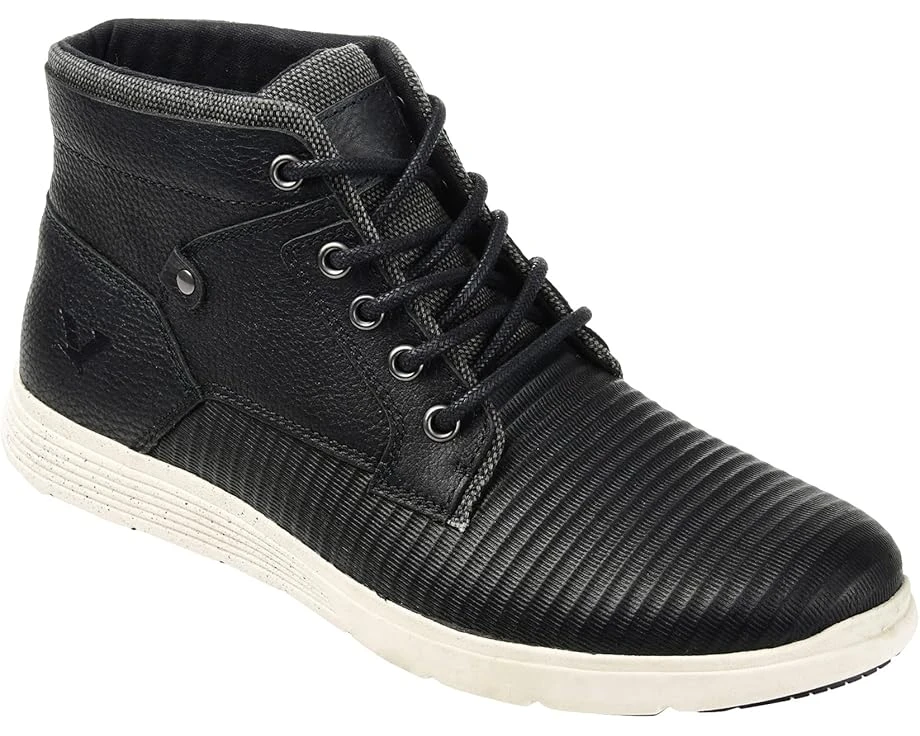 Easily make the transition from the office to happy our with the chic style of the Territory™ Boots Magnus Casual Leather Sneaker Boot.SKU: #9589721Ankle boot-inspired sneaker silhouette with full-lace closure.Padded tongue and collar for comfortable fit.Embossed leather and canvas upper with round laces and metal eyelets.Breathable textile mesh lining.Synthetic padded insole.Lightweight synthetic outsole, textured for grip.Imported.