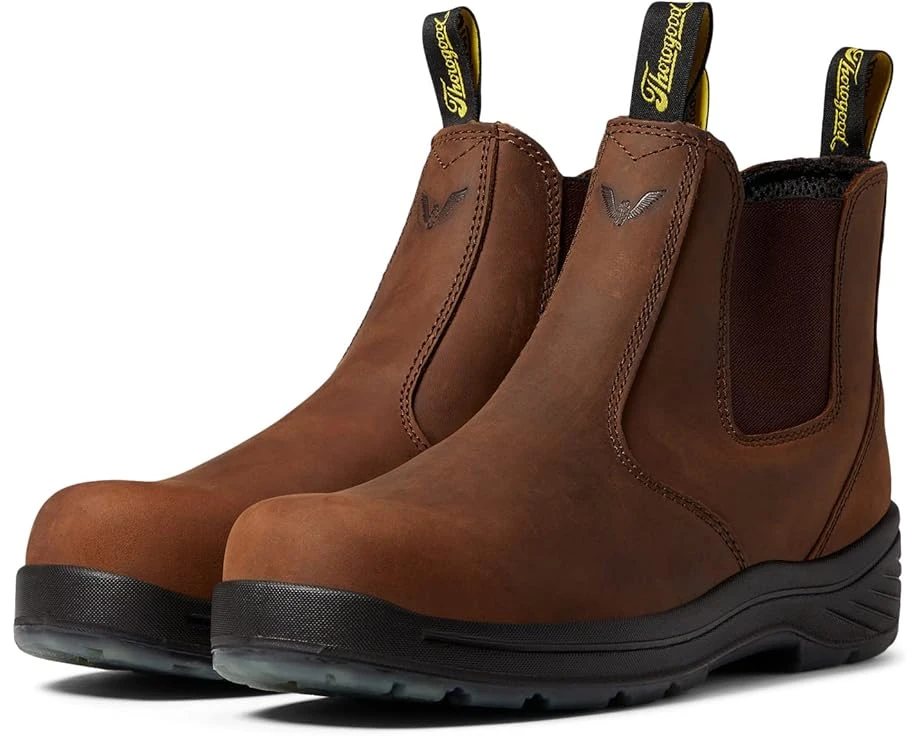 Go about your days with comfort and style in these Thorogood® 6″ Quick Release boots.SKU: #8774102Style numbers: 804-3166 (Crazyhorse)Composite safety toe passes the ASTM F2413-18 SEC.5.1 & 5.2 Impact and Compression resistant for safety toe standards.Features translucent bottom.Removable insole.Leather upper.Textile lining.Textile insole.Pull-on closure.Synthetic outsole passes ASTM F2913-17 for slip resistance.Imported.Product measurements were taken using size 8.5, width D – Medium. Please note that measurements may vary by size.Measurements: