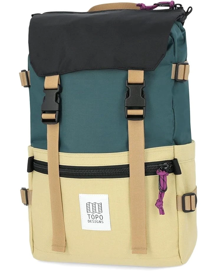 The Topo Designs® Rover Pack Classic was crafted for outdoor adventure with a stylish look that fits right in with the urban terrain.Spacious main compartment with top-loading design.Flap top with dual side-release buckle closures.Adjustable rucksack design with cinch closure.Top carry handle with spacer mesh shoulder straps.Internal laptop compartment with room for 15″ computers.Dual side compression straps.Rugged, 1000D nylon construction.Drawstring cinch closure.210D nylon packcloth liner.Zippered top flap and bottom pockets.Fully lined with a coated pack cloth.Two side water bottle pockets.External pocket with zip closure.Padded internal laptop/tablet pocket.Zip pocket located in rain flap.PackFast™ Travel Bag attachment loops.Slip pockets at sides for water bottles.1000D nylon, 420D nylon pack cloth, 210D nylon pack cloth liner; 1000D recycled nylon, 420D recycled nylon.Webbing compression straps at sides.Imported.Webbing grab handle.Adjustable shoulder straps.Heavy-duty plastic hardware.100% nylon.Measurements: