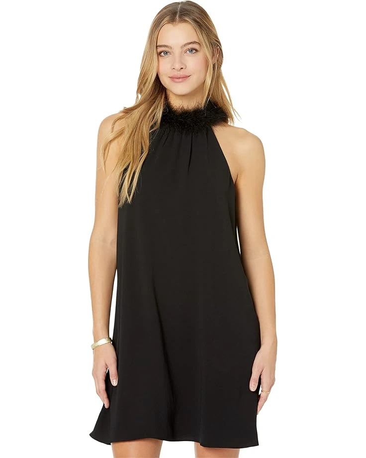 The primary materials that compose this product contain a minimum of 20 percent recycled content.SKU: #9819065You’ll be the stunner of the night when you show up in the gorgeous Trina Turk™ Grand Dress. Mini-length dress in an A-line silhouette. High halter neckline with a banded feather collar.Sleeveless design with cutaway shoulders. Button loop closure at the back neck. 67% recycled polyester, 33% polyester. Dry-clean. Imported. Product measurements were taken using size SM (US Women’s 4-6). Please note that measurements may vary by size.Measurements: