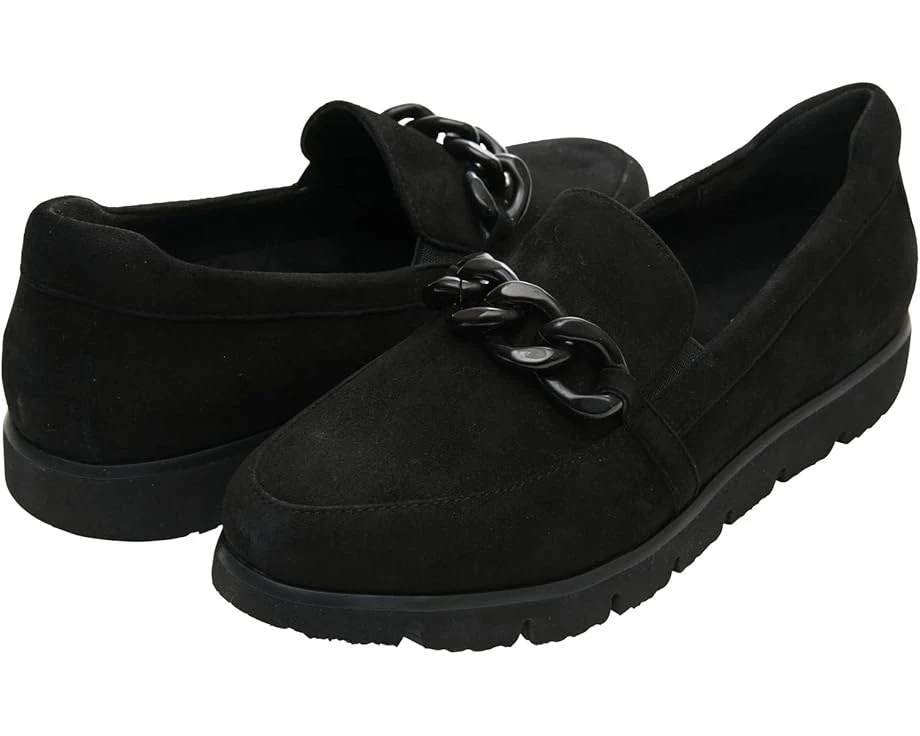 SKU: #9791904Loafer with matching chain trim. Trim is in suede or grey flannel.Padded insole for all day comfort.Grooved rubber sole for sure footing.Flannel upper.Synthetic lining and insole.Rubber outsole.Imported.Weight of footwear is based on a single item, not a pair.