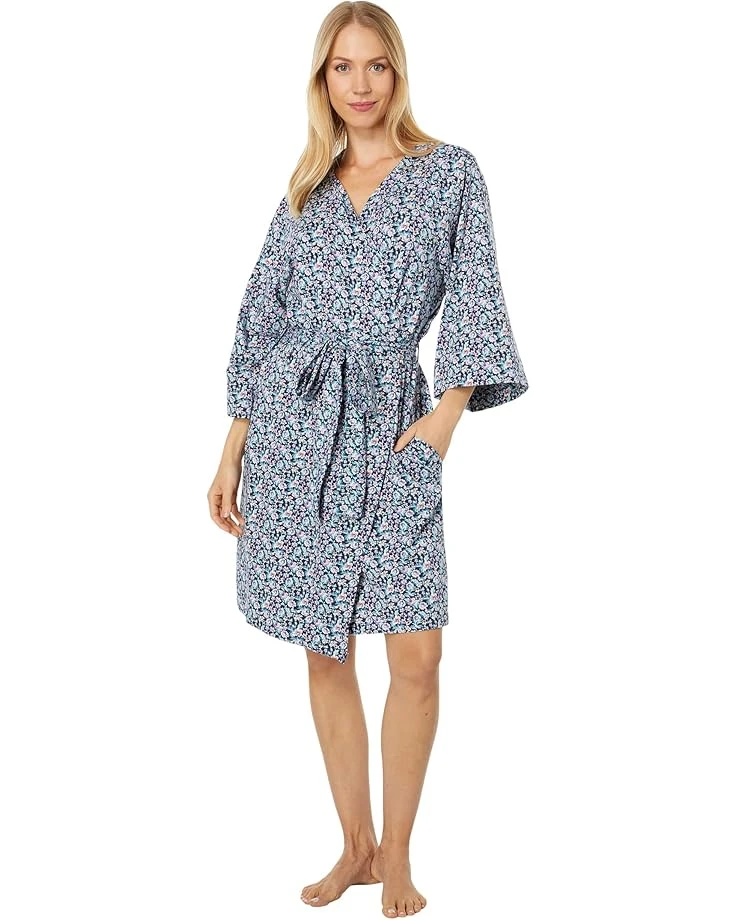 Start your day feeling like you just came from spa wearing the comfortable Vera Bradley® Cozy Knit Robe.SKU: #9845617Relaxed fit. Three-quarter length sleeves. Tie front closure. Two hand pockets on the sides.Knee length robe. Machine wash, tumble dry low.95% cotton, 5% spandex.Imported.