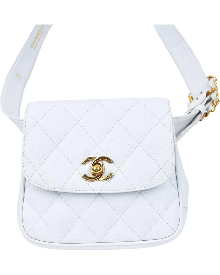 Previously owned: This Zappos PreLoved product comes to you PreLoved, continuing the legacy of this item.SKU: #9867773Certified Authentic. Coco Chanel founded her namesake brand in 1910 when she opened a hat shop called “Chanel Modes”. Coco expanded her high-fashion product offerings and added sportswear, jewelry, handbags, tweed suits, and her first Haute Couture house. In 1982, Karl Lagerfeld was brought in as Creative Director to revive the brand. He created the instantly recognizable CC logo, reintroduced the Cruise collection, restored Haute Couture, created Chanel’s Ready-to-Wear collection, and introduced the Classic Flap Bag. Today, Chanel is synonymous with timelessness, elegance, exclusivity and impeccable quality, known for its instantly recognizable CC logo.Condition: Good. Used. Wear consistent with normal use. Clearly used, but still in good condition. No heavy signs of damage.Details:Exterior has slight rubbing, minor discoloration, and thin scratches to metal hardware. The interior is slightly dirty to leather, comes with dust bag and authenticity card. Exterior: caviar leather.Interior: white leather.Gold-tone hardware with quilted caviar leather and adjustable wasit belt.Strap type: waist strap. Closure type: twist lock. Number of pockets: 1. Capacity: .5L. Made in Italy. Measurements: